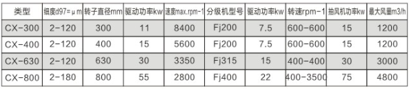 CX-1超细粉碎机广泛的适应性不仅是由于具备机械式柔和破碎以及大量空气流动形成的冷磨效果,同时也归功于气流分级机具有优越的分级性能,分级性能如下: